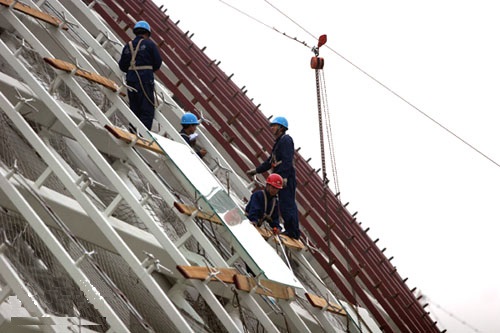 用來(lái)制作玻璃幕墻的玻璃是什么樣的呢?需要符合哪些行業(yè)標(biāo)準(zhǔn)呢?下面陜西玻璃幕墻的小編詳細(xì)介紹一下:1 、幕墻應(yīng)使用安全玻璃,玻璃的厚度不應(yīng)小于6mm。全玻璃幕墻肋玻璃的厚度不應(yīng)小于12mm。2 、 當(dāng)玻璃幕墻采用熱反射鍍膜玻璃時(shí),應(yīng)采用真空磁控陰極濺射鍍膜玻璃或在線熱噴涂鍍膜玻璃。用于熱反射鍍膜玻璃的浮法玻璃的外觀質(zhì)量和技術(shù)指標(biāo),應(yīng)符合現(xiàn)行國(guó)家標(biāo)準(zhǔn)《浮法玻璃》(GB11614)中的優(yōu)等品或一等品規(guī)定。3、 幕墻的中空玻璃應(yīng)采用雙道密封。明框幕墻的中空玻璃應(yīng)采用聚硫密封膠及丁基密封膠的隱框和半隱框幕...